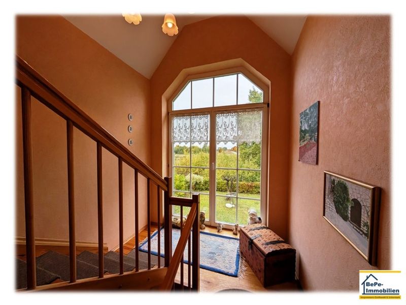 Zum Kauf angeboten wird ein in massiver Bauweise errichtetes Einfamilienhaus, welches sich im Erdgeschoss mit folgender Raumaufteilung erschließt: großer Wohn- Essbereich mit Küche und Zugang auf die südlich ausgerichtete Aussenterrasse, große Diele, Hauswirtschaftsraum und ein Duschbad mit WC. Über den hellen Flur/ Treppenaufgang gelangt man in das ausgebaute Dachgeschoss, hier befindet sich ein großes, helles Zimmer mit Balkon und Blick auf das Stettiner Haff, zwei weitere Zimmer und ein Wannen- Duschbad mit WC.