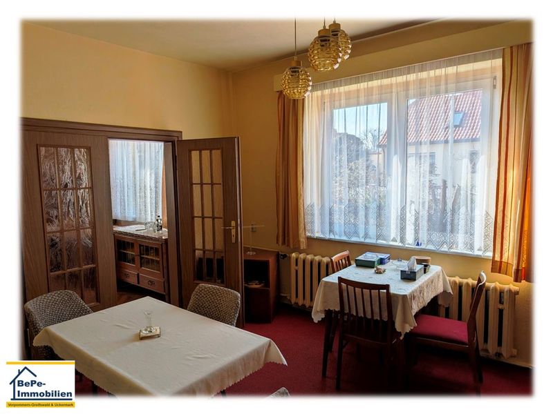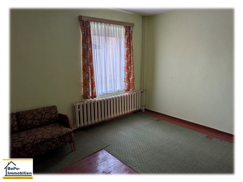 Zum Kauf angeboten wird ein ruhig gelegenes, leicht abschüssiges Grundstück, bebaut mit einem sanierungsbedürftigen Einfamilienhaus und mehreren kleineren Nebengebäuden, welche zur Kleintierhaltung dienten. Das Einfamilienhaus befindet sich in einem soliden Zustand und erschließt sich im Erdgeschoss mit 3 Zimmern, Küche mit Zugang auf die Veranda, Wannenbad, Flur und Diele. Das zum Teil ausgebaute Dachgeschoss verfügt noch über zwei weitere Zimmer. Das Haus, voll unterbaut mit einem Feldsteinkeller verfügt über 3 Kellerräume und dem Heizungskeller, wo im Jahr 2018 in Kombination eine Festbrennstoffheizung und eine Erdgas Brennwerttherme eingebaut/ installiert worden sind. Weitere Sanierungsarbeiten erfolgten z.B. 2002, mit dem Einbau von Isolierglasfenstern und 2007 die Erneuerung des Zaunes zur Straße. Weiterhin besteht am Haus Sanierungsbedarf.