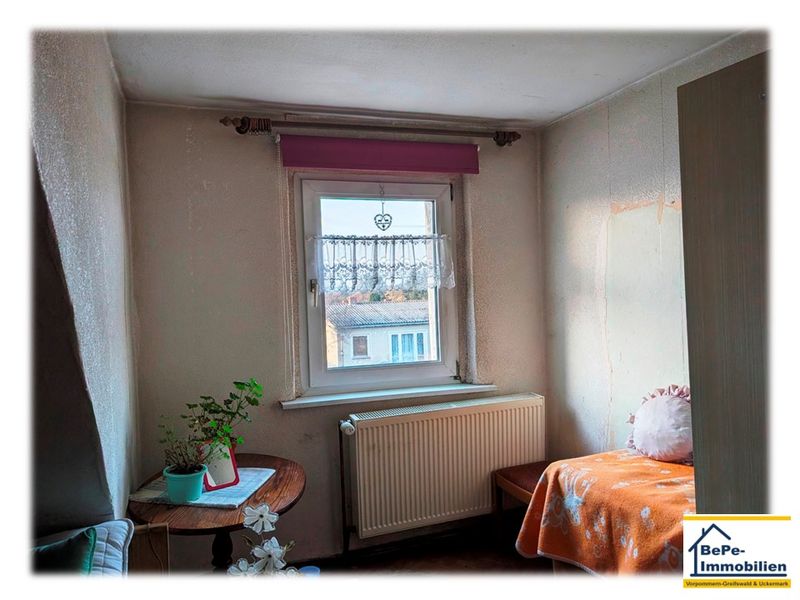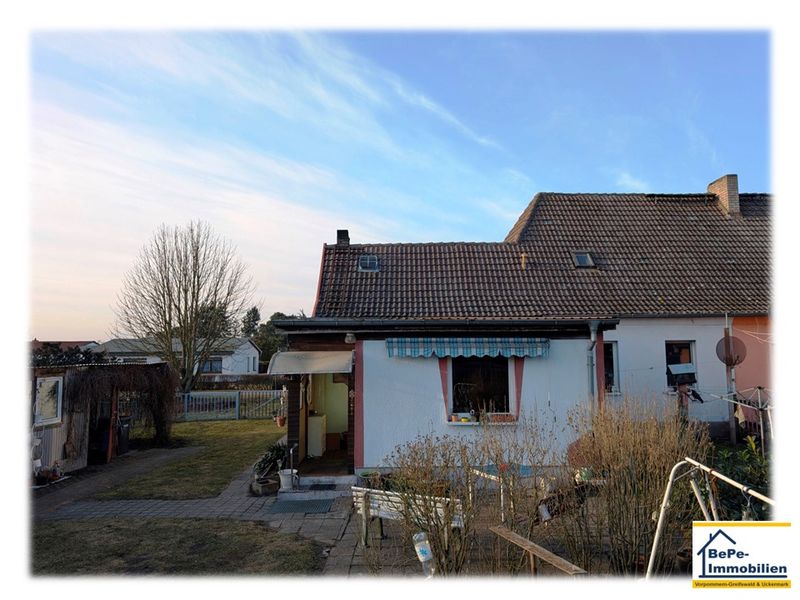 Zum Kauf angeboten wird ein sanierungsbedürftiges Reihenendhaus. Folgende Raumaufteilung finden Sie in Erdgeschoss vor: große Veranda, Flur, zwei Wohnräume, Duschbad mit WC, Heizungsraum und ein Hauswirtschaftsraum. Das Dachgeschoss erschließt sich mit zwei weiteren Wohnräumen, WC, Flur und einem Dachboden. Dach ganze Wohnhaus befindet sich in einem sanierungsbedürftigen, aber soliden Zustand. Letzte ausgeführte Erneuerungen sind der Einbau der Forsterheizung, der Einbau von zweifach Isolierglasfenstern und Fassadenarbeiten. Auf dem großen Grundstück mit Baumbestand befinden sich mehrere Nebengebäude (kleine Werkstatt, Schuppen, Garage), ein Gartenteil und ein Grundstücksteil zur Kleintierhaltung.