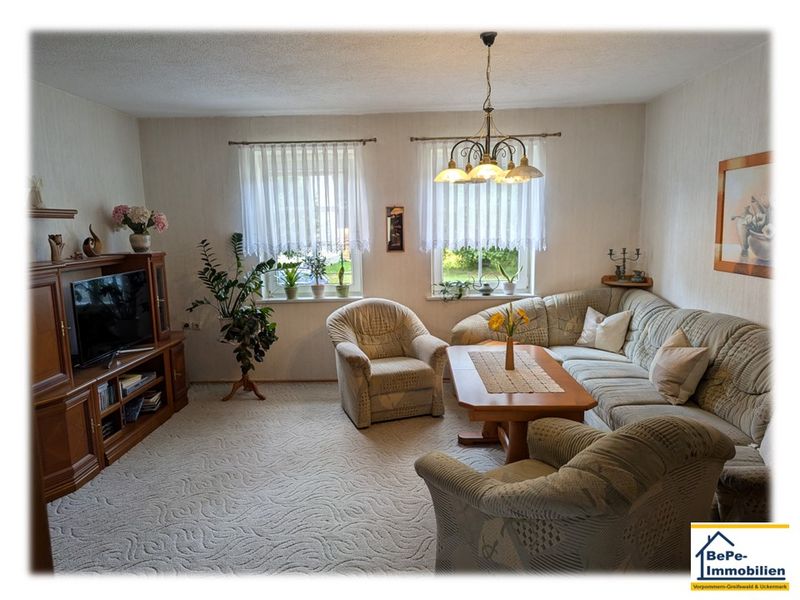 Wir haben für Sie zum Kauf ein gepflegtes, solides Einfamilienhaus, welches von einem großen, individuell angelegten Garten, mit Sommerbungalow umgeben ist. Im Erdgeschoss des Hauses finden Sie folgende Wohnraumaufteilung vor: Veranda, Diele /Flur, Küche mit Einbaumöbel inklusiven Geräten, ein Wannen- Duschbad mit WC und ein großes, helles Wohnzimmer. Das ausgebaute Dachgeschoss erschließt sich mit zwei Zimmern und einem WC mit Handwaschbecken.